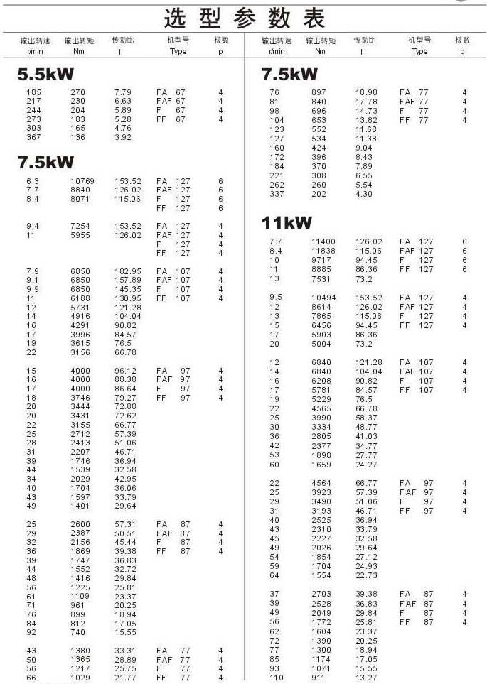 選型參數表5.5kW(續(xù)),7.5kW,11kW