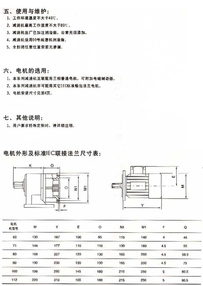使用與維護電機的選用其他說明電機外型及標準IEC聯(lián)結(jié)法蘭尺寸表
