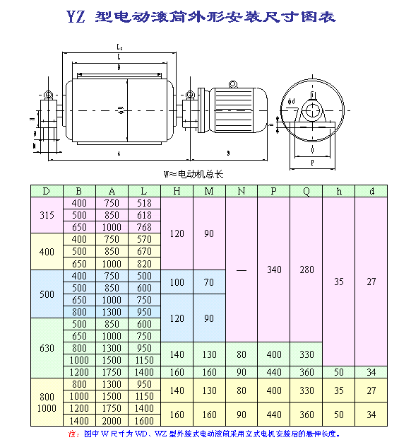 (1)因目前外裝式電動滾筒尚未制定相關(guān)行業(yè)標(biāo)準(zhǔn),本廠將該型號電動滾筒首位代號用W(“外裝”的首位漢語拼音)表示。外裝式電動滾筒外置電機(jī)可分為立式電機(jī)和臥式電機(jī),用戶訂購時(shí)請加以說明;